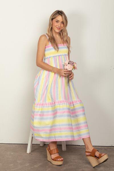VERY J Striped Woven Smocked Midi Cami Dress
