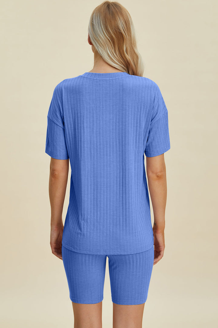 Basic Bae Full Size Ribbed V-Neck Short Sleeve Top and Shorts Set