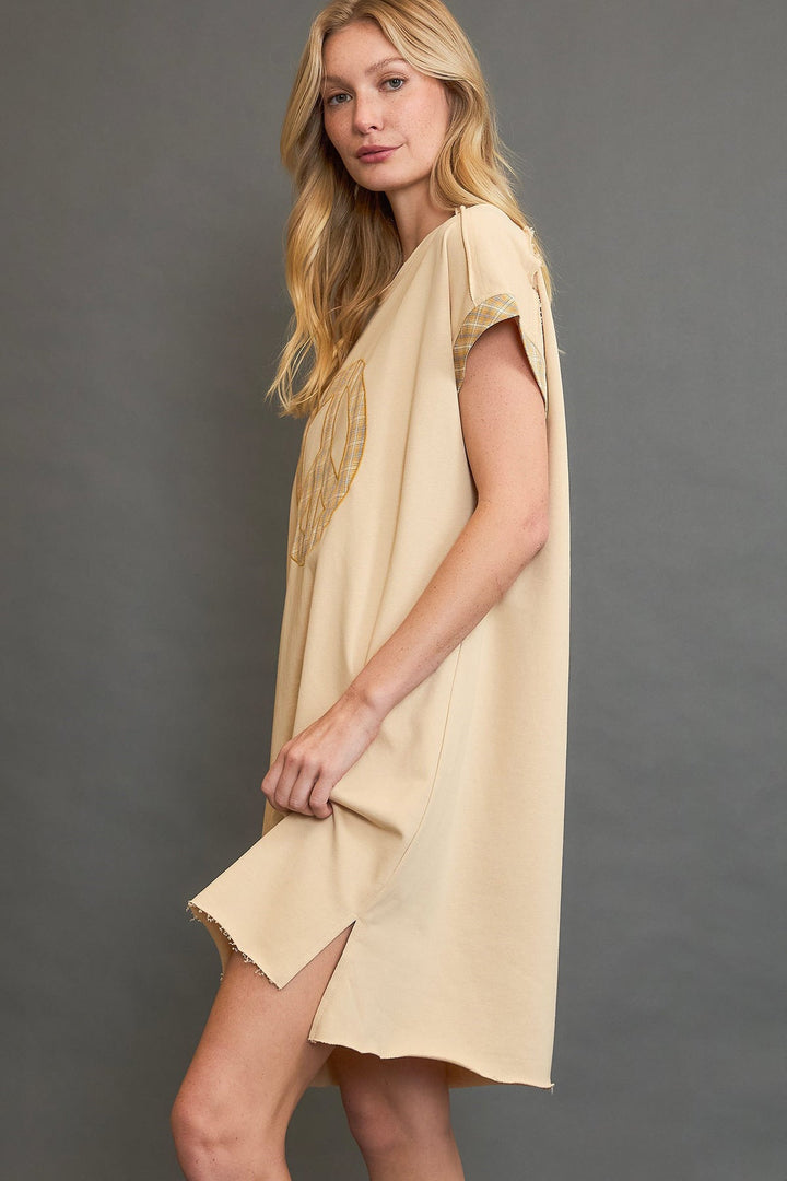 Umgee Peace Plaid Applique Short Sleeve Mini Dress