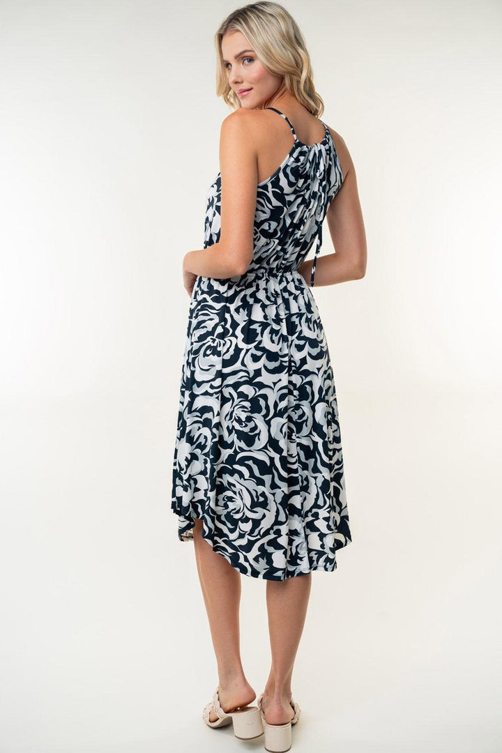 Embrace your feminine side with the Tie Back Sleeveless Floral Dress, a charming and romantic addition to your wardrobe. This dress features a beautiful floral pattern that exudes elegance and grace. The tie back detail adds a touch of sophistication and allows for a customizable fit. Perfect for any special occasion, this dress is sure to turn heads and make you feel confident and stylish. The sleeveless design is ideal for warmer weather, while the floral print adds a pop of color and whimsy to your ensemble. Step out in style and make a statement with the Tie Back Sleeveless Floral Dress. Features: Ruched, Tied Sheer: Opaque Stretch: Moderate stretch Body: Not lined Material composition: 95% polyester, 5% spandex Care instructions: Machine wash cold. Tumble dry low. Imported Product measurements: S: bust 30 in, length 45 in M: bust 32 in, length 46 in L: bust 34 in, length 47 in XL: bust 36 in, length 48 in