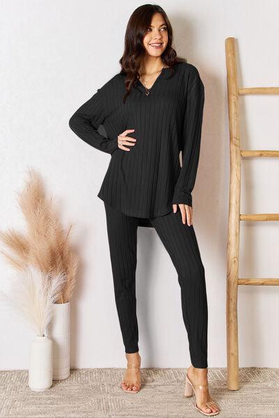 Basic Bae Full Size Notched Long Sleeve Top and Pants Set