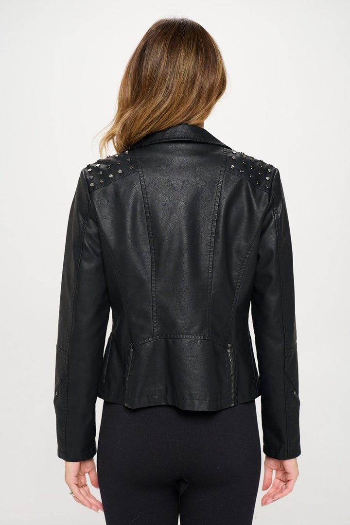 Coalition LA Studded Classic Moto Faux Leather Jacket