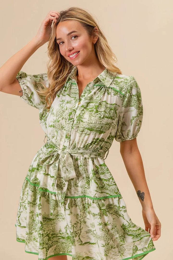 A woven printed tiered dress typically features multiple layers (tiers) of fabric that create a layered look. The dress is made from a woven fabric, which means that it is constructed by weaving threads together. The printed design adds visual interest to the dress. This style is often flowy and feminine, making it a popular choice for a variety of occasions. You can pair it with sandals for a casual look or dress it up with heels for a more formal event. Features: Buttoned, Tiered, Belted, Pocketed Stretch: No stretch Body: Not lined Material composition: 100%POLYESTER Care instructions: Machine wash cold. Tumble dry low. Imported Product measurements: S:Bust 34-36 in, Waist 26-28 in M:Bust 37-38 in, Waist 29-31 in L:Bust 39-40 in, Waist 32-33 in XL:Bust 41-42 in, Waist 34-35 in