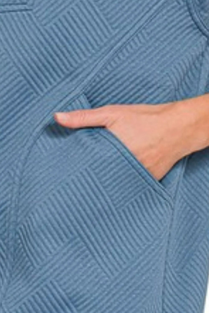 Zenana Textured Knit Jacquard Quarter Zipper Mini Dress