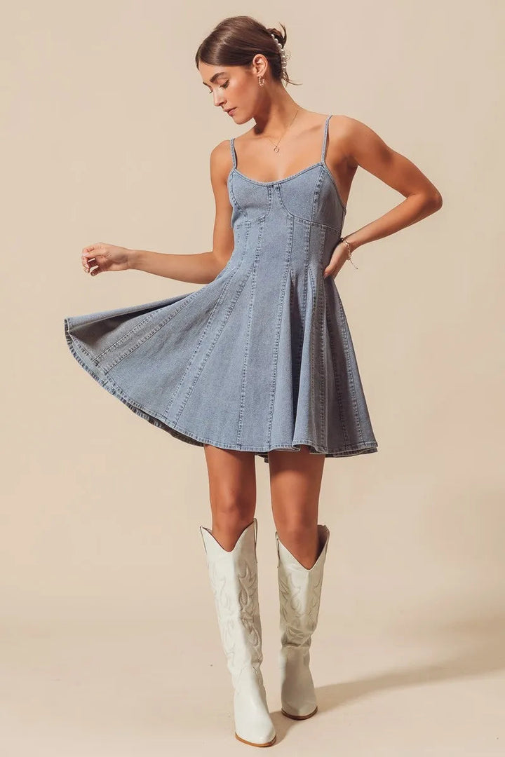 SO ME A Line Fit and Flare Denim Mini Dress