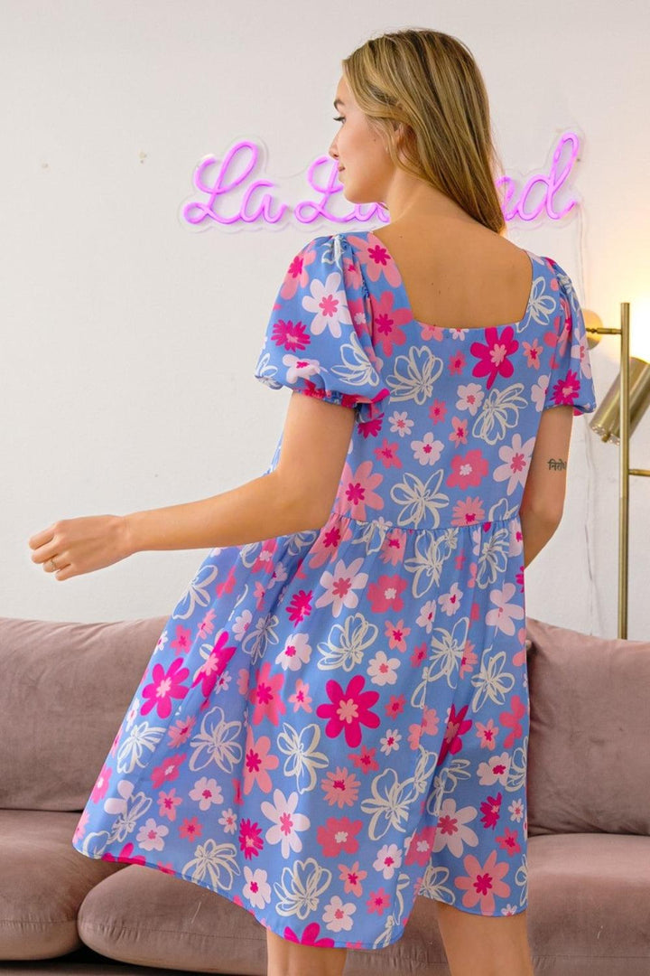 BiBi Floral Puff Sleeve Mini Dress