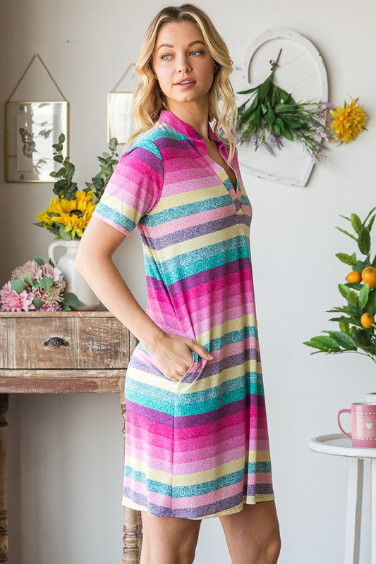 The Striped Short Sleeve Mini Tee Dress is a casual and comfortable choice for everyday wear. The striped pattern adds a classic touch to the dress, while the mini length gives it a fun and youthful vibe. This tee dress is perfect for a relaxed day out or can be dressed up with accessories for a laid-back yet stylish look. Features: Basic style, Pocketed Sheer: Opaque Stretch: Highly stretchy Body: Not lined Material composition: 95% polyester, 5% spandex Care instructions: Machine wash cold. Tumble dry low. Made in Mexico Product measurements: S:Bust 34-36 in, Waist 26-28 in M:Bust 37-38 in, Waist 29-31 in L:Bust 39-40 in, Waist 32-33 in 1XL:Bust 41-42 in, Waist 34-35 in 2XL:Bust 43 in, Waist 36 in 3XL:Bust 45 in, Waist 38 in