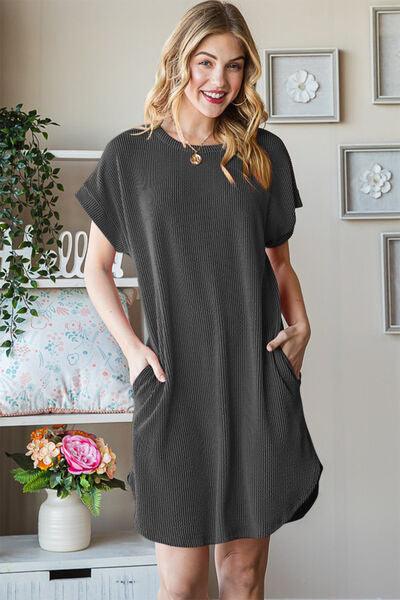Heimish Full Size Ribbed Round Neck Short Sleeve Tee Dress