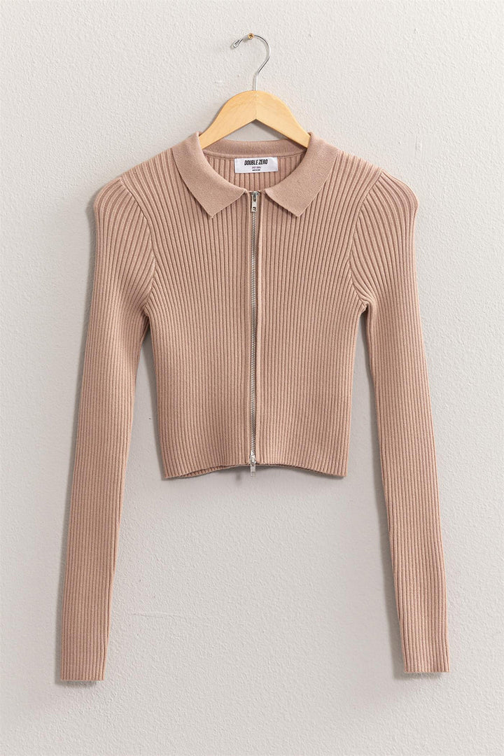 HYFVE Ribbed Double Zip Cropped Cardigan