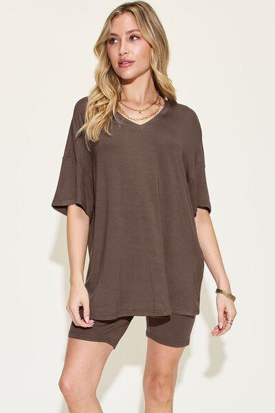 Basic Bae Full Size V-Neck Drop Shoulder Short Sleeve T-Shirt and Shorts Set