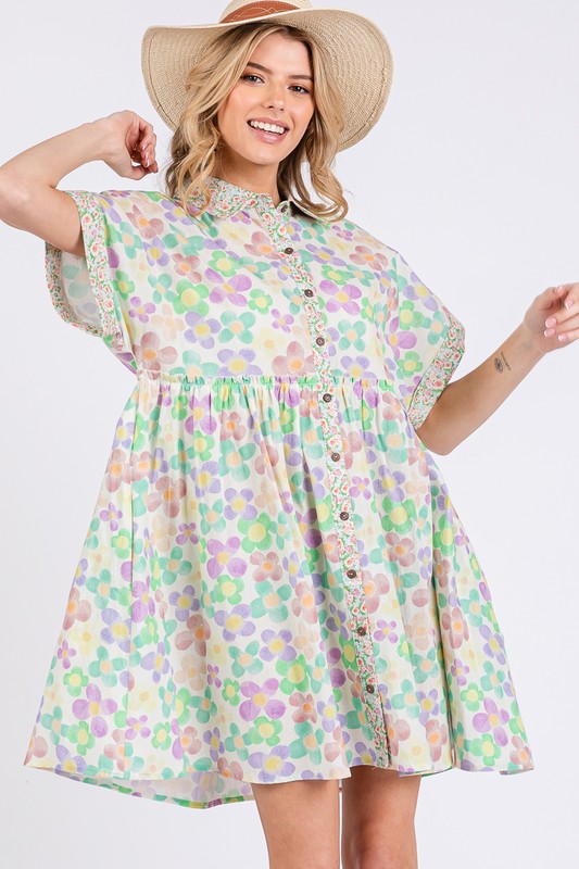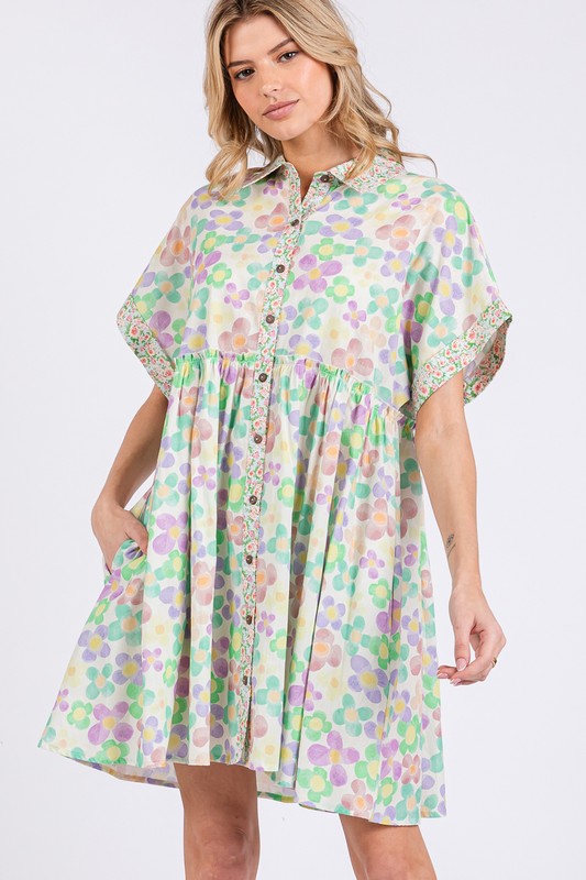 SAGE+FIG Floral Babydoll Short Sleeves Dress