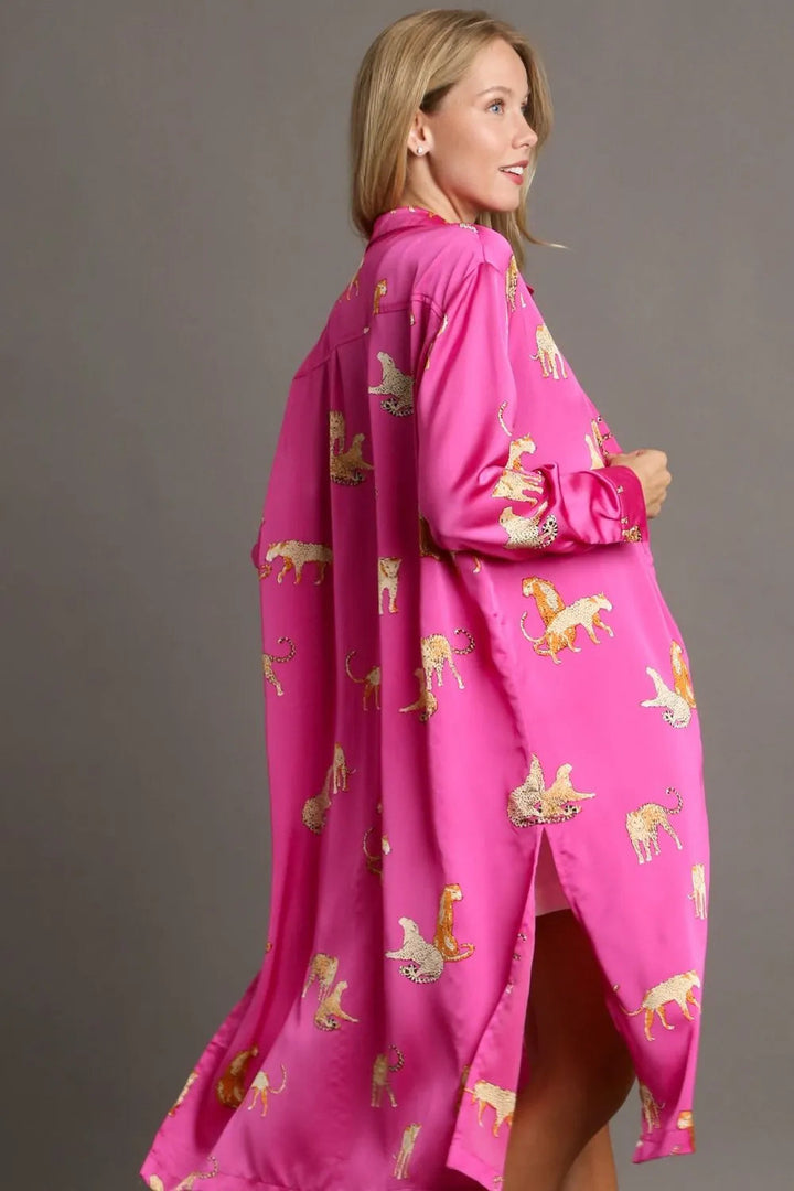 Umgee Full Size Animal Print Button Down Midi Shirt Dress Plus Size
