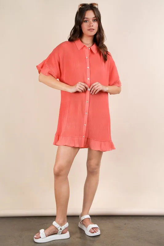 VERY J Pleated Detail Button Down Mini Dress