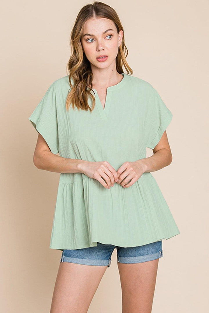 Cotton Bleu by Nu Lab Ruched Notched Short Sleeve Blouse