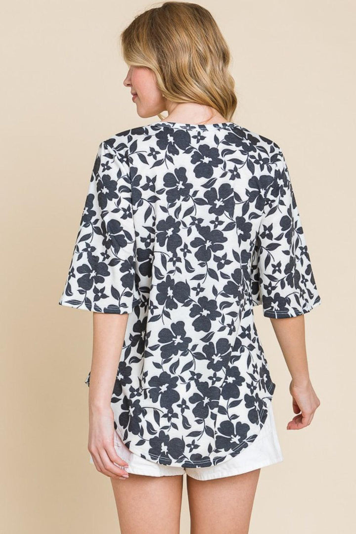 The Floral Decorative Button V-Neck Top is a charming and elegant piece that combines feminine florals with stylish details. Featuring decorative buttons and a flattering v-neckline, this top exudes a sophisticated and fashion-forward look. The floral pattern adds a touch of romance and whimsy to the design, making it perfect for various occasions. Ideal for pairing with jeans or trousers, this top can easily transition from day to night. Elevate your wardrobe with the Floral Decorative Button V-Neck Top, a versatile and chic option that effortlessly merges sophistication and flair. Embrace the beauty of florals and showcase your unique style with this lovely and fashionable top. Features: Basic style Sheer: Opaque Stretch: No stretch Material composition: 95% polyester, 5% spandex Care instructions: Machine wash cold. Tumble dry low. Made in USA Model is wearing size S and is 5'10"/178 cm Product measurements: S:Bust 35-36 in, Waist 27-28 in M:Bust 37-38 in, Waist 29-30 in L:Bust 39-40 in, Waist 31-32 in XL:Bust 41-42 in, Waist 33-34 in
