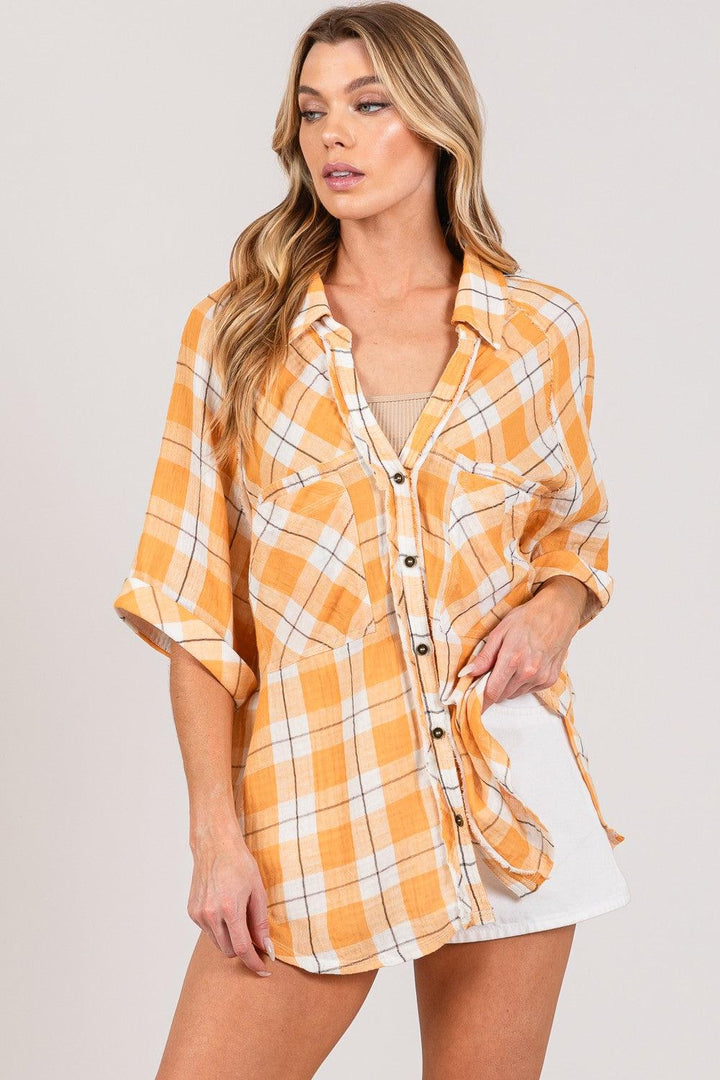 SAGE + FIG Plaid Button Up Side Slit Shirt