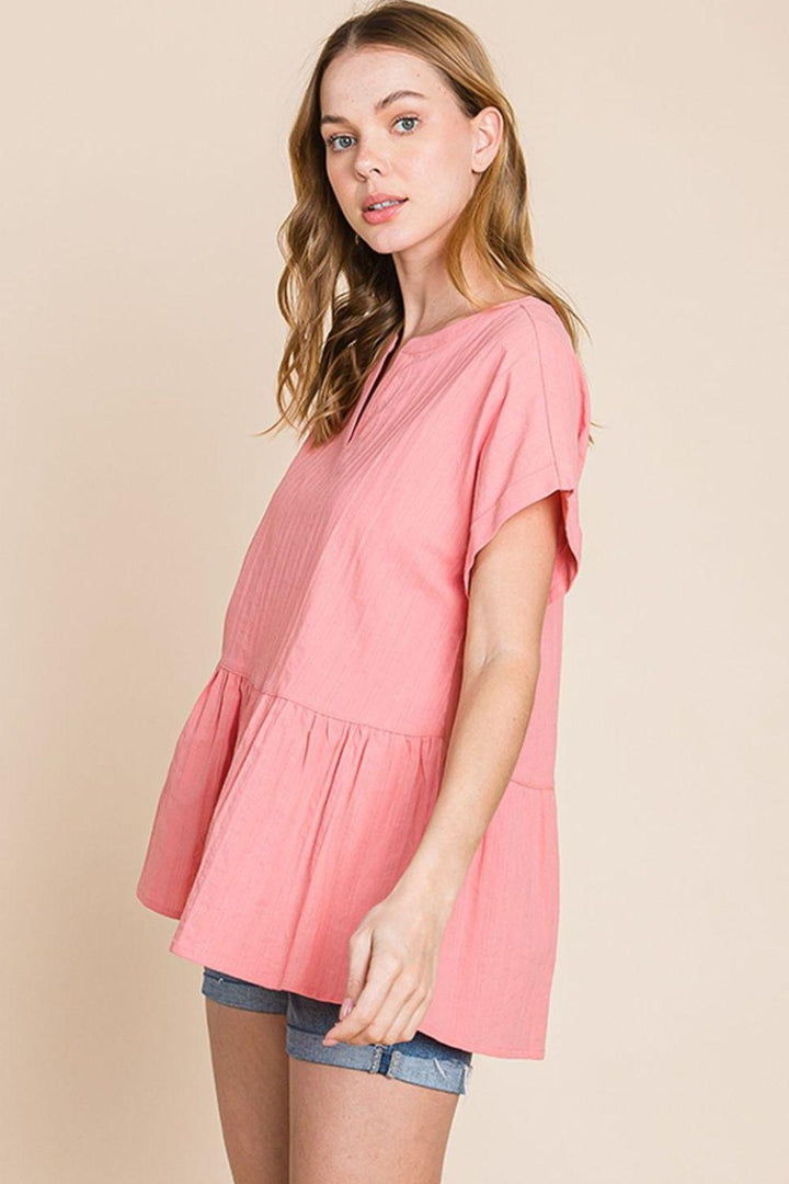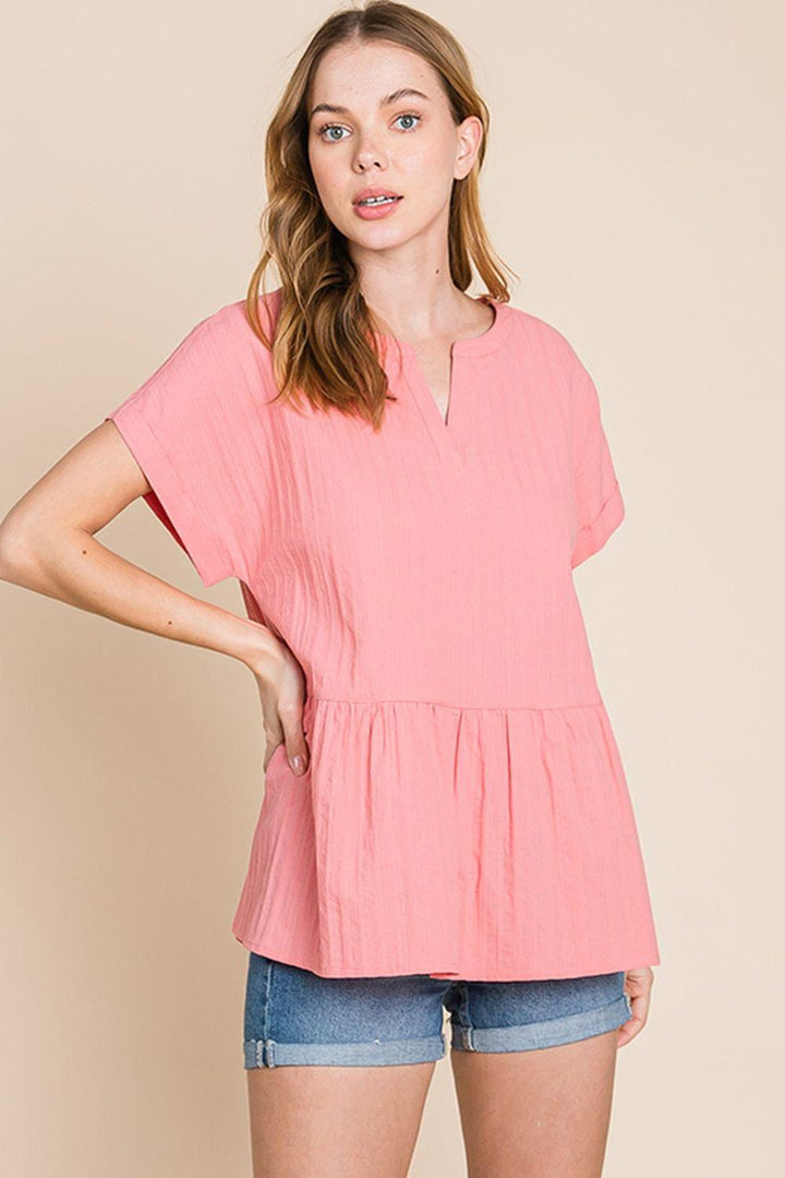 Cotton Bleu by Nu Label Notched Short Sleeve Peplum Top