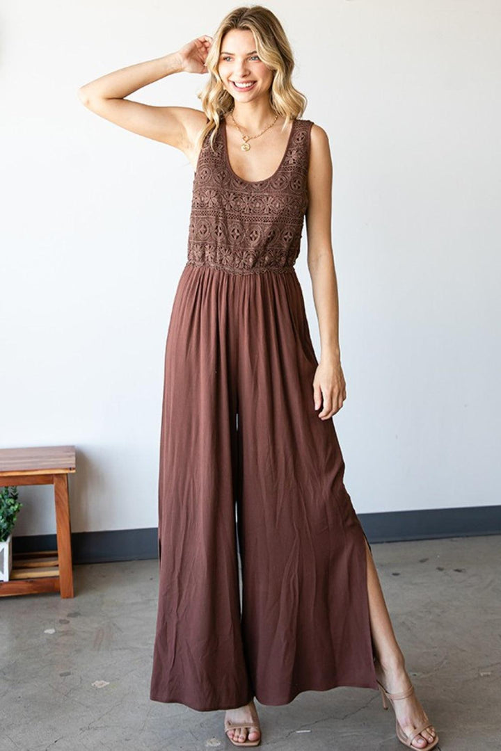 First Love Tie Back Sleeveless Slit Wide Leg Jumpsuit