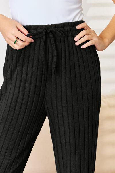 Basic Bae Full Size Ribbed Drawstring Hood Top and Straight Pants Set