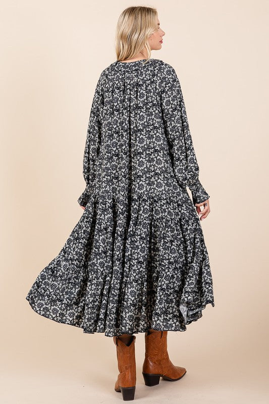 Mittoshop Printed Tie Neck Flounce Sleeve Midi Dress