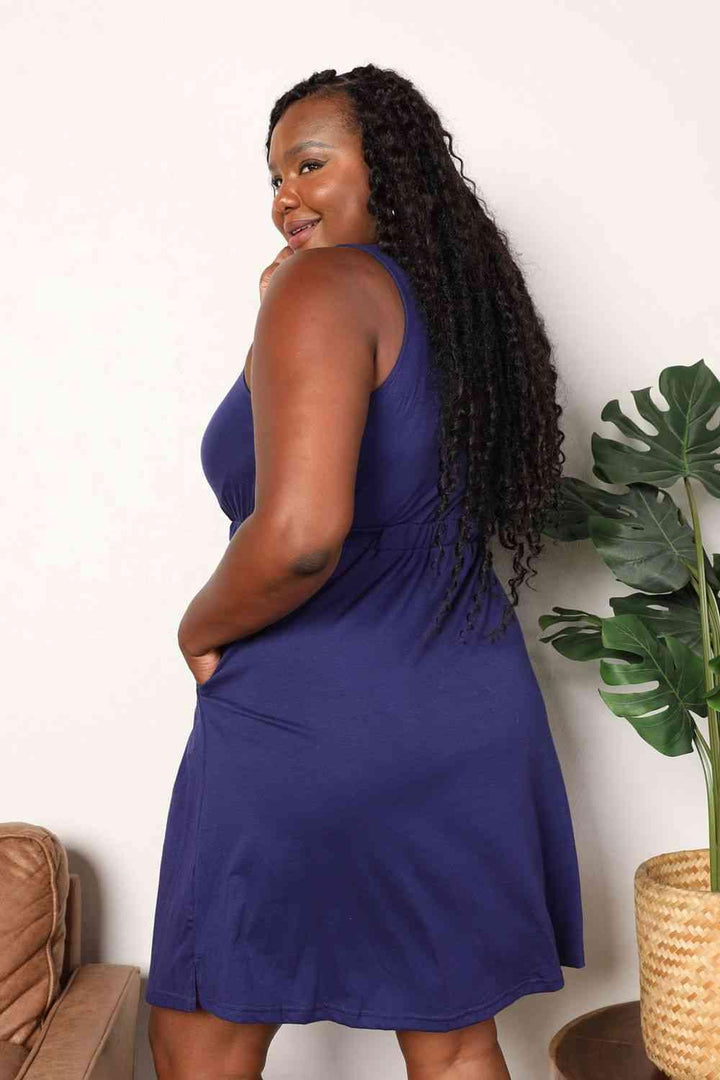 This sleeveless dress is a casual style that you can't miss. The empire waist and slit add a chic touch to the general look, making it suitable for both work and play. Features: Buttoned Sheer: Opaque Stretch: Moderate stretch Body: Not lined Material composition: 95% polyester, 5% spandex Care instructions: Machine wash cold. Tumble dry low. Imported Model information: Curve model-height 5'9", bust 46", waist 37", hip 48", size 1X, jeans size 14W Regular size model-height 5'9", bust 34", waist 25", hip 35", size S, jeans size 3 Product measurements: S: bust 35 in, waist 27 in, shoulder 11 in, length 35 in, hem width 57 in M: bust 37 in, waist 29 in, shoulder 12 in, length 36 in, hem width 59 in L: bust 39 in, waist 31 in, shoulder 12 in, length 37 in, hem width 61 in XL: bust 42 in, waist 34 in, shoulder 13 in, length 38 in, hem width 64 in 2XL: bust 45 in, waist 37 in, shoulder 13 in, length 39 in, hem width 67 in
