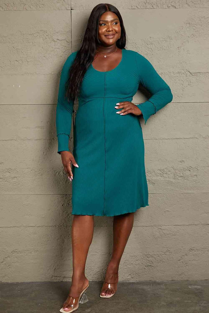 This stunning dress effortlessly combines comfort and sophistication. Its unique chevron pattern on the upper body adds a touch of modern flair, while the V-neck and long sleeves provide a timeless elegance. Crafted from a blend of high-quality materials including cotton, rayon, and spandex, this midi dress offers a relaxed fit that flatters every body type. Whether you're headed to a casual brunch or a night out, the rib fabric and solid design ensure you'll look effortlessly chic and feel comfortable all day long. Pattern type: Solid Style: Chic Features: Basic style Neckline: Scoop neck Length: Knee length Sleeve length: Long sleeves Sleeve type: Regular sleeves Hem shaped: A-line Sheer: Opaque Body: Not lined Material composition: 55% cotton, 35% rayon, 10% spandex Stretch: Highly stretchy Care instructions: Machine wash cold. Tumble dry low. Imported Product measurements: S: bust 28 in, length 41 in M: bust 30 in, length 41 in L: bust 32 in, length 42 in XL: bust 34 in, length 42 in 1XL: bust 36 in, length 43 in 2XL: bust 38 in, length 43 in 3XL: bust 40 in, length 44 in