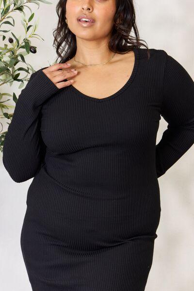 Culture Code Full Size Ribbed Long Sleeve Midi Slit Dress