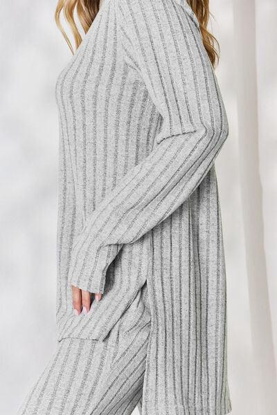 Basic Bae Full Size Ribbed High-Low Top and Wide Leg Pants Set