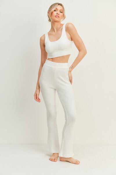 Kimberly C Waffle Tank and High Waist Flare Pants Set