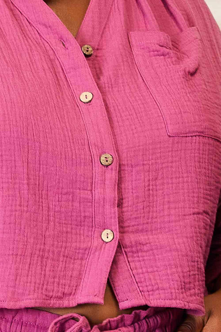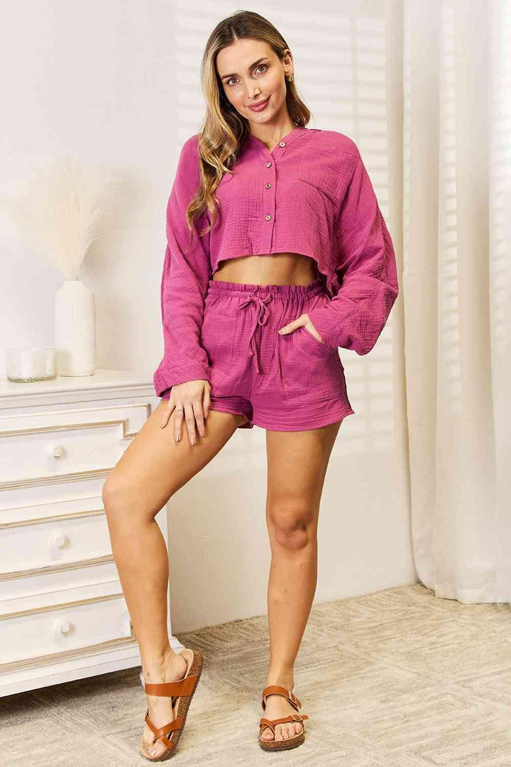 Basic Bae Buttoned Long Sleeve Top and Shorts Set