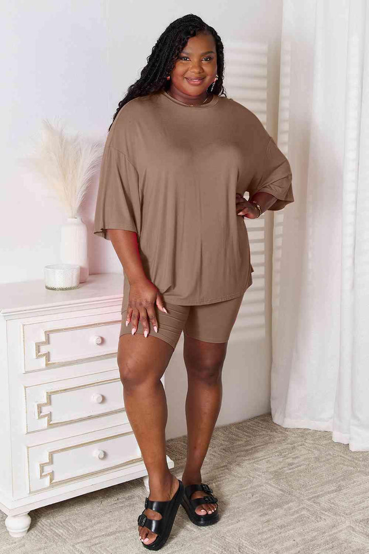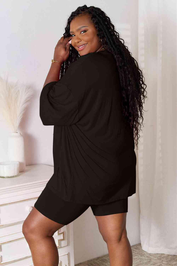 Basic Bae Full Size Soft Rayon Three-Quarter Sleeve Top and Shorts Set