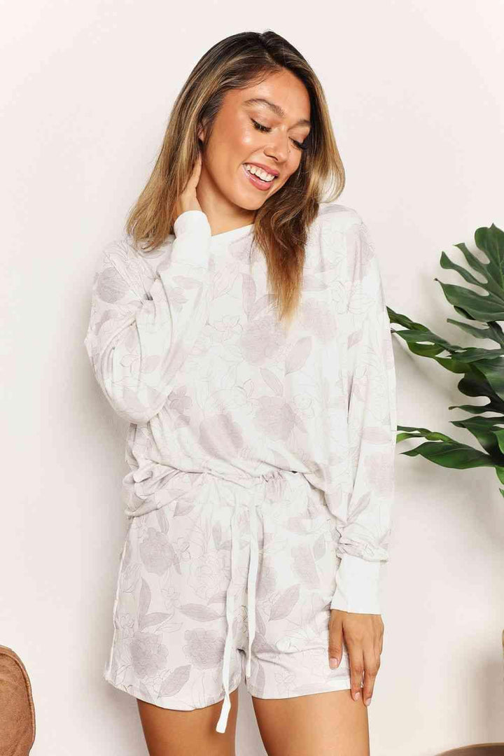 Double Take Floral Long Sleeve Top and Shorts Loungewear Set