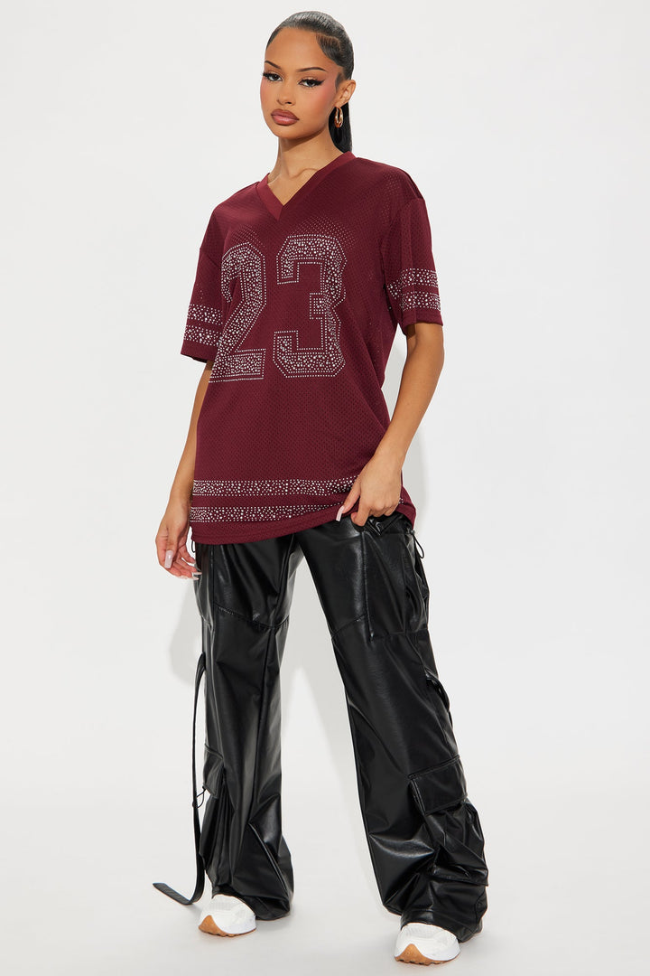 23 Rhinestone Jersey Tee - Burgundy