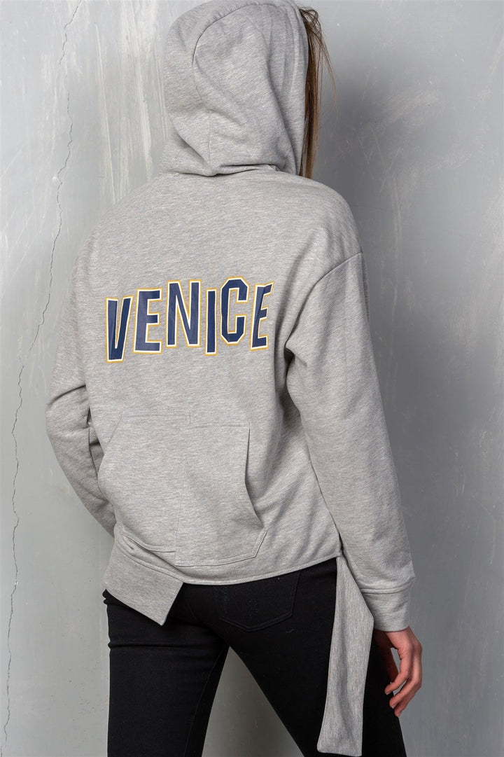 Uneven Hem Graphic "venice" Pullover Hoodie