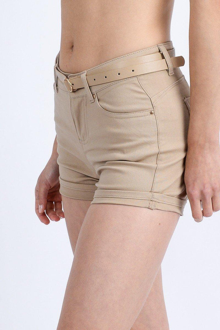 Elevate your summer wardrobe with our High Rise 5 Pockets Roll Up Hem Shorts—a versatile and stylish addition perfect for warm days. Available in sizes S, M, and L, these shorts feature a classic Khaki hue, a high-rise fit, 5 pockets for practicality, a roll-up hem for a casual touch, a zip fly, buttoned closure, and a included belt for added flair. Key Features: 1. Material: Crafted from 97% Cotton and 3% Spandex, these shorts offer a comfortable and stretchy fit. 2. Sizes: Available in S, M, and L to ensure a perfect fit for different body types. 3. Design: The Khaki color, high-rise fit, 5 pockets, roll-up hem, zip fly, buttoned closure, and included belt create a classic and versatile pair of shorts. 4. Roll-Up Hem: The roll-up hem adds a casual and laid-back touch to the shorts. 5. Belt Included: The shorts come with an included belt for added style and versatility. 6. Comfortable Fabric: The blend of cotton and spandex ensures a comfortable and breathable feel. Product Details: • Classic Khaki Hue: Embrace the timeless and versatile Khaki color that pairs well with various tops. • Roll-Up Hem: The roll-up hem adds a casual and relaxed vibe, perfect for warm days. • Included Belt: The shorts come with an included belt, allowing you to customize your look. Why Choose High Rise 5 Pockets Roll Up Hem Shorts? Make a statement with these classic High Rise 5 Pockets Roll Up Hem Shorts featuring a Khaki hue, roll-up hem, and included belt. The shorts are perfect for summer days, offering both style and comfort. Ideal Occasions: Perfect for casual outings, beach days, or any occasion where you want to showcase a laid-back and stylish look. Customer Reviews: 1. "Love the Khaki color! The roll-up hem is a nice touch, and the included belt adds extra style." - Emma G. 2. "Comfortable and stylish—the perfect shorts for a relaxed and casual summer look. The fit is just right!" - Lily A. 3. "The 5 pockets are so practical, and the high-rise fit is flattering. I can't wait to wear these all summer!" - Olivia S. Size Guide: For accurate sizing guidance, please refer to our size chart available on the website. Shipping and Returns: • Fast Shipping: We offer speedy delivery to your doorstep. • Hassle-Free Returns: If you're not completely satisfied, our flexible return policy ensures your peace of mind. Update your summer wardrobe with the High Rise 5 Pockets Roll Up Hem Shorts in Khaki. Add them to your cart now for a classic and versatile look! High Rise 5 Pockets Roll Up Hem Shorts