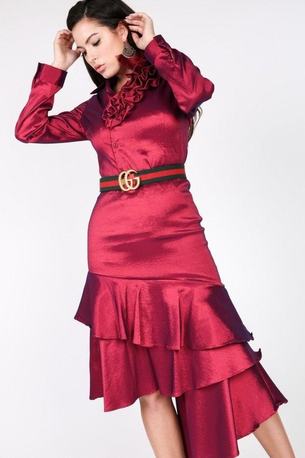 Elevate your wardrobe with our Asymmetrical Ruffle Bottom Satin Skirt, a sophisticated and chic piece designed to add a touch of glamour to your style. Crafted with meticulous attention to detail, this satin skirt seamlessly combines comfort with a luxurious flair for an effortlessly fashionable aesthetic. Key Features: 1. Fabric: Indulge in the silky smooth blend of 55% Polyester, 40% Nylon, and 3% Spandex, ensuring a comfortable and flexible fit in a rich and elegant Deep Plum. 2. Size Options: Choose from our size range with options available in S, M, and L for a perfect fit. 3. Design Elements: This satin skirt features an asymmetrical ruffle bottom, creating a dynamic and stylish silhouette. 4. Versatile Wear: Ideal for various occasions, from evening events to special occasions, providing a polished and sophisticated aesthetic. 5. Comfortable Fit: The polyester-nylon-spandex blend ensures a comfortable and flattering fit, making this skirt a standout piece in your wardrobe. Product Details: - Quality Craftsmanship: Each satin skirt is expertly crafted for comfort and durability, ensuring it meets the highest standards. - Stylish Details: The asymmetrical ruffle bottom makes this skirt a versatile and eye-catching addition to your collection. - Care Instructions: Hand wash in cold water and hang to dry for easy maintenance. Why Choose Asymmetrical Ruffle Bottom Satin Skirt? Experience the perfect blend of comfort and style with our Asymmetrical Ruffle Bottom Satin Skirt, where quality craftsmanship meets modern design. Stand out and embrace confidence with this chic and elegant piece. Ideal Occasions: Perfect for a variety of occasions, from evening events to special occasions, this satin skirt seamlessly transitions from day to night, ensuring you look effortlessly stylish in any setting. Customer Reviews: 1. "Absolutely in love with my Asymmetrical Ruffle Bottom Satin Skirt! The Deep Plum color is rich and elegant, and the asymmetrical ruffle adds a touch of glamour. The fit is amazing!" - Sarah W. 2. "A must-have for a luxurious and chic look! The fabric is silky smooth, and the asymmetrical ruffle bottom makes this skirt a standout piece. Highly recommend!" - Michael H. 3. "Deep Plum is a stunning color, and this skirt is my new favorite! The asymmetrical ruffle adds a dynamic flair, and the fit is flattering. I feel confident and stylish in it!" - Emily L. Size Guide: - For accurate sizing guidance, please review our size chart available on the website. Shipping and Returns: - Fast Shipping: We offer speedy delivery to your doorstep. - Hassle-Free Returns: If you're not completely satisfied, our flexible return policy ensures your peace of mind. Make a statement with our Asymmetrical Ruffle Bottom Satin Skirt in Deep Plum. Add it to your cart now and experience the perfect blend of fashion and comfort! Asymmetrical Ruffle Bottom Satin Skirt