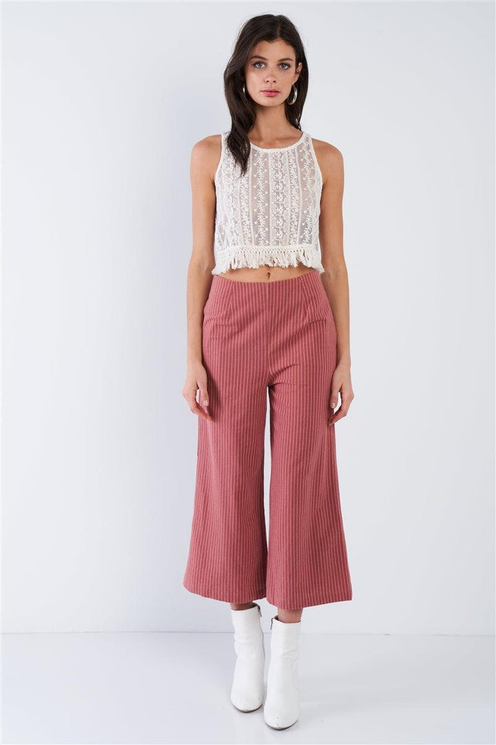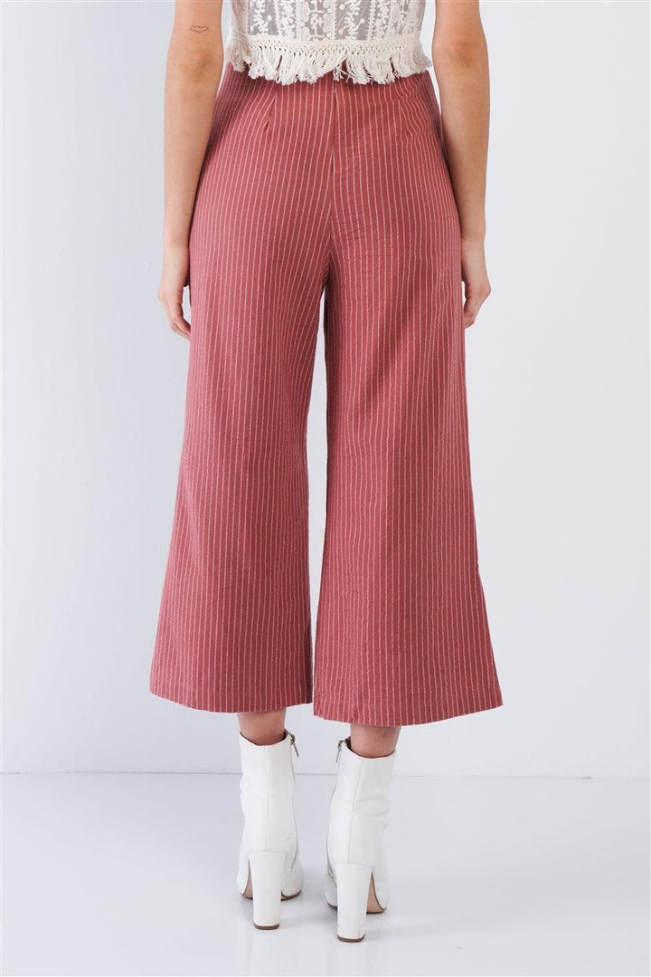 Dusty Rose Pink Cotton Pinstripe Gaucho Pants