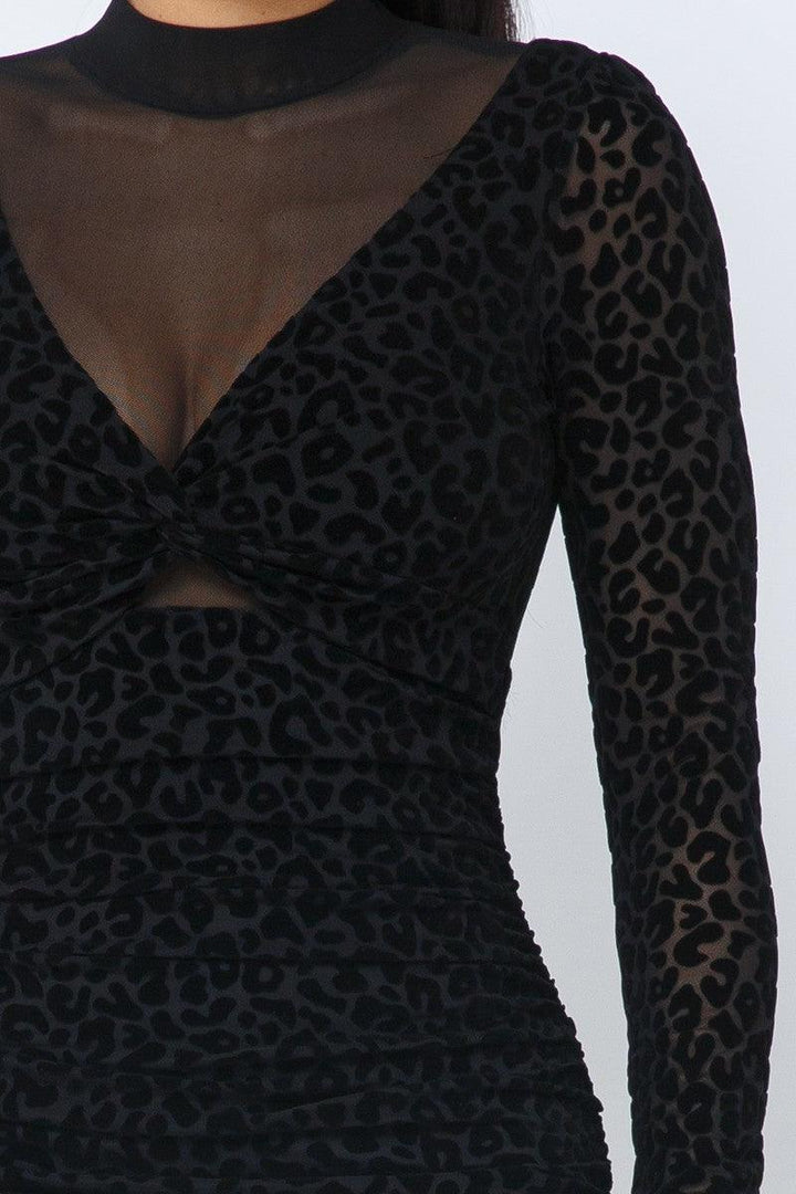Animal Print Long Sleeve Mock Neck Mini Dress