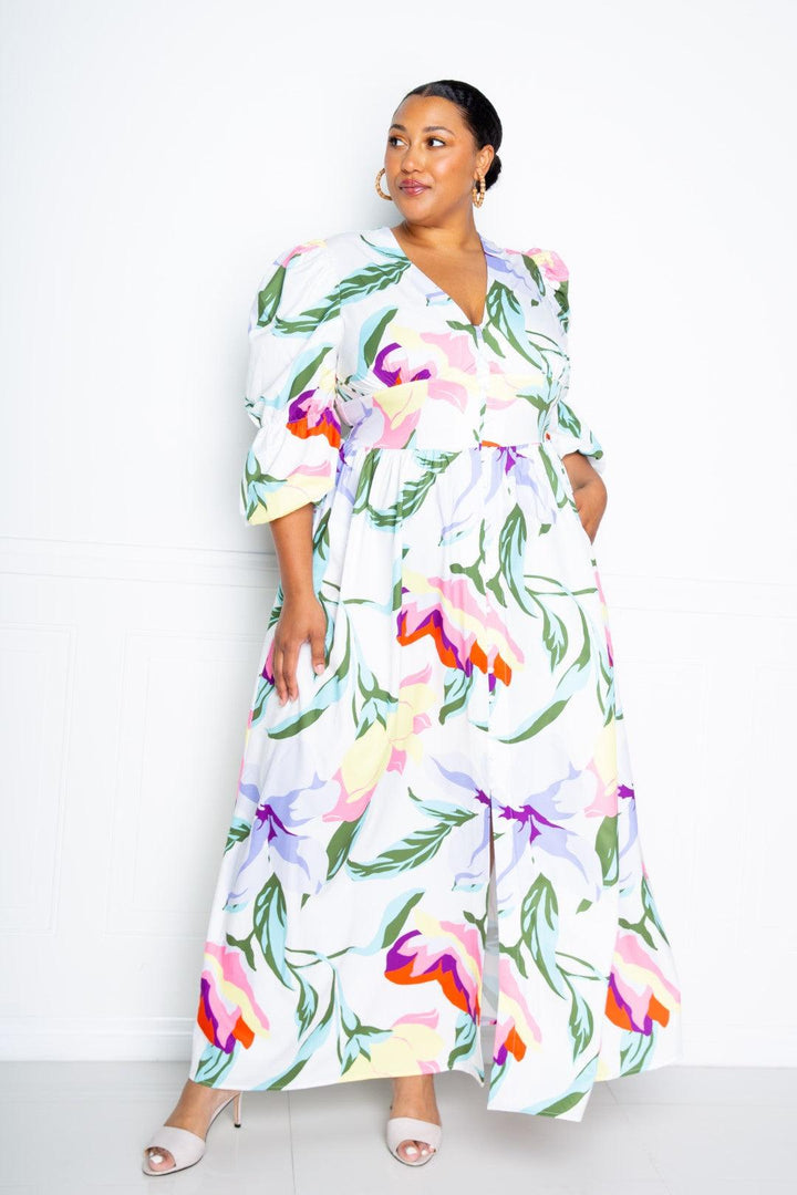 Elevate your wardrobe with our Puff Sleeve Button Front Dress, a trendy and versatile piece designed to make a statement. Crafted with attention to detail, this dress seamlessly combines fashion-forward style with comfort, creating a stunning look for various occasions. Key Features: 1. Fabric: Immerse yourself in the luxurious feel of 95% Polyester and 5% Spandex, ensuring a comfortable and stretchy wear. 2. Sizes: Choose from a range of sizes, including 1XL, 2XL, and 3XL, to find the perfect fit that complements your style. 3. Design: Embrace the chic button-front design with puff sleeves, adding a touch of modern flair to elevate your look. 4. Color Options: Opt for the fresh and vibrant White Multi, creating a statement piece that exudes confidence and style. Product Details: • Puff Sleeve Detail: The puff sleeves add a trendy and fashionable element to the dress, making it a standout piece in your collection. • Button Front: The button-front design adds a touch of sophistication and allows for customizable styling options. • Comfortable Fabric: The polyester-spandex blend ensures comfort and ease of movement, making it perfect for various occasions. Why Choose Puff Sleeve Button Front Dress? Embrace the trendy design and comfortable fabric of our button-front dress. The puff sleeves make it a versatile and stylish choice for any occasion. Ideal Occasions: Perfect for semi-formal events, parties, or date nights, this dress is an ideal choice for creating a chic and confident look. Customer Reviews: • "Obsessed with the puff sleeves! Adds such a trendy touch to the classic button-front dress. Love it!" - A. R. • "The White Multi color is so fresh and vibrant. The fit is perfect, and I feel both trendy and comfortable in this dress!" - K. L. • "A must-have for anyone who loves staying on-trend. The fabric is soft and stretchy, making it a joy to wear!" - S. M. Size Guide: For accurate sizing guidance, please review our size chart available on the website. Shipping and Returns: • Fast Shipping: We offer speedy delivery to your doorstep. • Hassle-Free Returns: If you're not completely satisfied, our flexible return policy ensures your peace of mind. Add our Puff Sleeve Button Front Dress in White Multi to your cart now and embrace fashion-forward style with the perfect blend of comfort and trendiness! Puff Sleeve Button Front Dress
