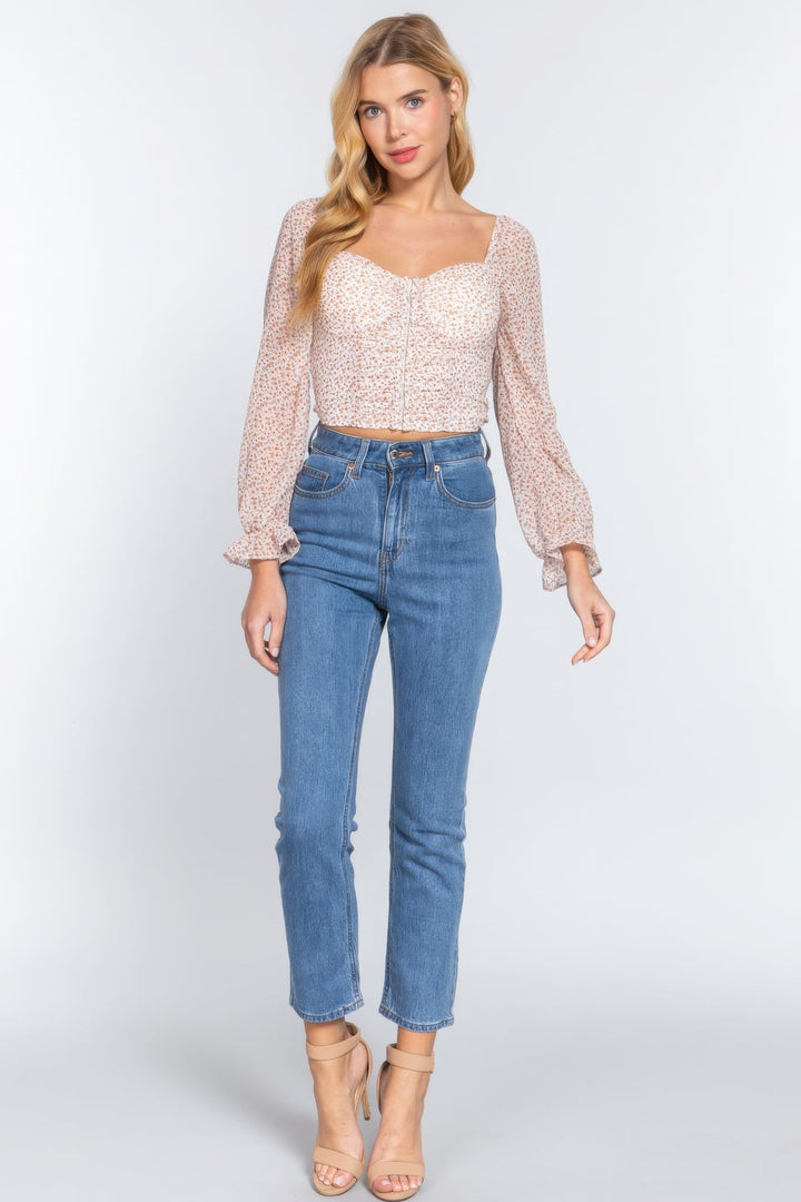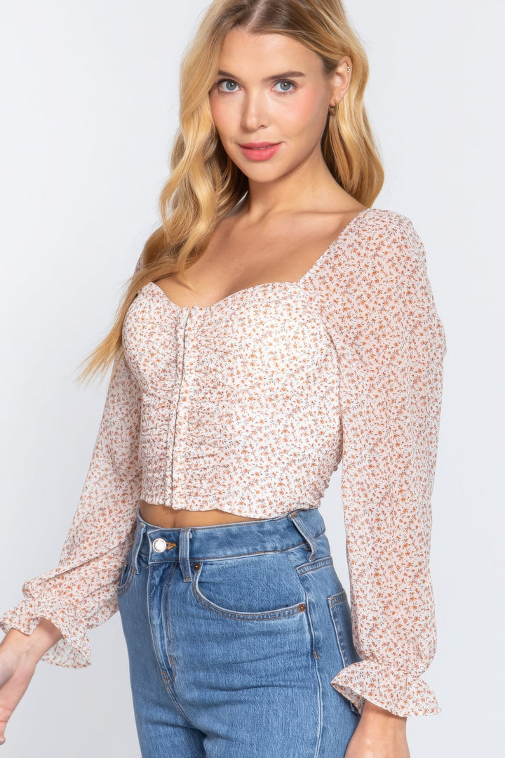 Introducing our Long Sleeve Sweetheart Neck Hook & Eye Detail Floral Printed Woven Top in Ivory—a romantic and charming addition to your wardrobe. Available in S, M, and L sizes, this woven top features delightful design elements that add a touch of femininity and elegance to your ensemble. Key Features: 1. Fabric: Crafted from 100% Polyester, this top offers a soft and luxurious feel, ensuring both comfort and a flattering drape. 2. Design Elements: The long sleeve top features a sweetheart neckline with hook & eye detail and a beautiful floral print, creating a romantic and stylish look. 3. Color: Ivory provides a classic and versatile hue, allowing for easy pairing with various bottoms and accessories. Product Details: • Stylish All-Day Wear: Our Long Sleeve Sweetheart Neck Hook & Eye Detail Floral Printed Woven Top is designed for maximum style and comfort, making it a versatile choice for various occasions. • Quality Construction: Meticulously crafted with attention to detail, ensuring durability and lasting style. Why Choose Long Sleeve Sweetheart Neck Hook & Eye Detail Floral Printed Woven Top? This top is a romantic and fashion-forward choice that effortlessly blends delightful design with comfort. Ideal for those who appreciate versatile pieces that add a touch of sophistication to any ensemble. Ideal Occasions: Perfect for romantic outings, date nights, or whenever you want to showcase your feminine and chic style with a touch of floral elegance. This top is a wardrobe essential for elevating your look. Customer Reviews: - "The ivory color is so elegant and versatile! The sweetheart neckline with hook & eye detail and floral print make this top romantic and timeless. Highly recommend!" - A. M. - "Love the luxurious feel of this top! The long sleeves and floral print add a touch of elegance, and the ivory color is perfect for any occasion. A must-have!" - L. T. - "Perfect fit and quality. The sweetheart neckline with hook & eye detail and floral print add a cute touch, and the ivory color is classic and easy to style. This top is a new favorite!" - J. K. Size Guide: For accurate sizing guidance, please refer to our size chart available on the website. Shipping and Returns: • Fast Shipping: We offer speedy delivery to your doorstep. • Hassle-Free Returns: If you're not completely satisfied, our flexible return policy ensures your peace of mind. Elevate your style with our Long Sleeve Sweetheart Neck Hook & Eye Detail Floral Printed Woven Top in Ivory. Add it to your cart now and enjoy the perfect blend of romance and comfort! Hook & Eye Floral Print Woven Top
