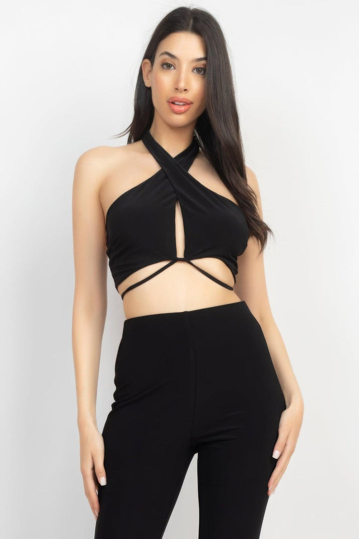 Introducing our Solid Halter Top and Elastic Leggings Set in Black—a timeless and versatile ensemble that seamlessly combines sophistication with comfort. Available in S, M, and L sizes, this set features a fashionable crop top and stretchable leggings, perfect for making a bold and elegant statement. Key Features: 1. Fabric: Crafted from a blend of 95% Polyester and 5% Spandex, this set offers a soft and stretchable feel, ensuring comfort and a flattering fit. 2. Top Features: The solid black crop top boasts a chic halter neckline, a drawstring waist tie for a customized fit, a front cutout for added flair, and an open back that exudes confidence and style. 3. Leggings Features: The stretchable black leggings feature a high-rise elastic waistband for comfort and a secure fit, a flattering bell-bottom silhouette, and a full length that adds a touch of sophistication. Product Details: • Comfortable All-Day Wear: Our Solid Halter Top and Elastic Leggings Set is designed for maximum comfort, allowing you to express your style with ease throughout the day. • Quality Construction: Each piece is meticulously crafted with attention to detail, ensuring durability and lasting style. Why Choose Solid Halter Top and Elastic Leggings Set? This set is a timeless and fashion-forward choice that effortlessly blends bold design elements with comfort. Ideal for those who appreciate versatile ensembles that seamlessly transition from day to night. Ideal Occasions: Perfect for evenings out, special occasions, or whenever you want to showcase your confident and chic style. This set is versatile enough to suit various occasions. Customer Reviews: - "The black color is a classic! The halter top is so stylish, and the leggings are comfortable and flattering. A must-have set!" - A. M. - "The open back detail adds a touch of glamour. The high-rise leggings are perfect for any occasion, and the black color is effortlessly elegant." - L. T. - "Excellent quality and fit. The drawstring waist tie on the halter top is a nice touch, and the black leggings are a wardrobe staple. Love this set!" - J. K. Size Guide: For accurate sizing guidance, please refer to our size chart available on the website. Shipping and Returns: • Fast Shipping: We offer speedy delivery to your doorstep. • Hassle-Free Returns: If you're not completely satisfied, our flexible return policy ensures your peace of mind. Make a bold and elegant statement with our Solid Halter Top and Elastic Leggings Set in Black. Add it to your cart now and enjoy the perfect blend of comfort and timeless style! Solid Halter Top And Elastic Leggings Set