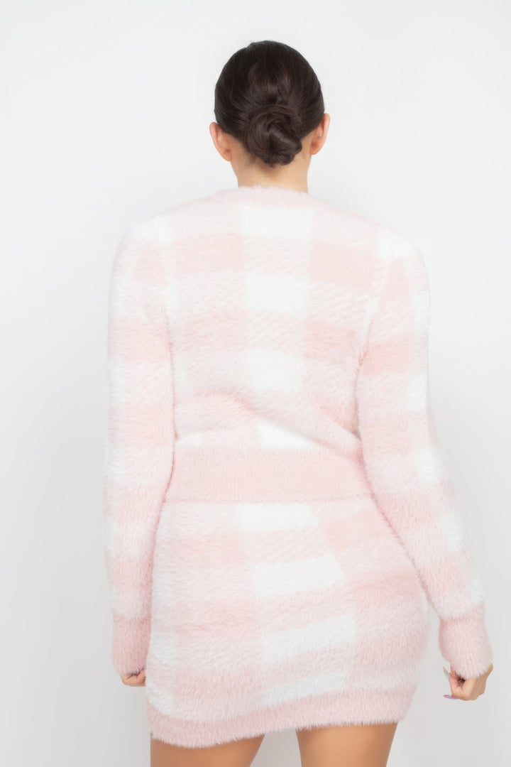 Elevate your winter style with our Plaid Button-front Cropped Sweater Cardigan—an essential addition for a cozy and chic season. This fuzzy knit cardigan showcases a delightful plaid pattern, complemented by a button-front closure, long sleeves, a v neckline, and a modern cropped hem. Crafted from 100% Nylon, the Blush shade adds a touch of soft elegance to this winter wardrobe staple. Key Features: 1. Fabric: Indulge in the luxurious softness of 100% Nylon, ensuring warmth and comfort for your winter days. 2. Fit: Embrace the relaxed fit that effortlessly enhances your winter style. 3. Color: Choose the delicate Blush shade for a feminine and on-trend look. Product Details: • Comfortable All-Day Wear: Our Plaid Button-front Cropped Sweater Cardigan is designed for maximum comfort, keeping you snug and stylish from morning to night. • Quality Craftsmanship: Meticulously crafted with attention to detail for durability and long-lasting wear. • Care Instructions: Maintain the plush texture with simple washing and care instructions. Why Choose Plaid Button-front Cropped Sweater Cardigan? Experience the perfect blend of comfort and style. The unique plaid pattern and cropped hem make this cardigan a standout choice for winter fashion. Ideal Occasions: Whether you're heading to a casual outing or enjoying a relaxed day at home, this cardigan effortlessly elevates your winter wardrobe for various occasions. Customer Reviews: 1. "Blush perfection! Love the cozy feel and stylish design. - Emily T." 2. "The plaid pattern is so charming. Stylish and comfortable—my winter favorite! - Alex G." 3. "Perfect for a feminine touch. The Blush color is absolutely beautiful. - Olivia M." Size Guide: For accurate sizing guidance, please refer to our size chart available on the website. Shipping and Returns: • Fast Shipping: Enjoy speedy delivery to your doorstep. • Hassle-Free Returns: If you're not completely satisfied, our flexible return policy ensures your peace of mind. Add the Plaid Button-front Cropped Sweater Cardigan in Blush to your cart now and embrace the warmth and style it brings to your winter wardrobe! Plaid Button-front Cropped Sweater Cardigan