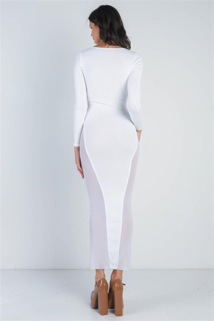 Introducing our Cutout Bust Mesh Side Detail Long Sleeve Dress, a captivating and trendy piece designed to make a statement on your next night out. Crafted from a luxurious knit material with meticulous attention to detail, this dress seamlessly combines style, allure, and comfort. Key Features: 1. Fabric: Revel in the softness and stretch of 70% Rayon and 30% Nylon, ensuring a comfortable and figure-flattering fit. 2. Design: Embrace the allure of mesh side details and a cutout bust, adding a touch of sexiness to the dress. 3. Style: The long sleeves, round neckline, and maxi length contribute to the dress's chic and stylish silhouette. 4. Fit: The slim fit and stretchy fabric provide a comfortable and flattering look for various body types. 5. Color: Choose the timeless and elegant White hue, perfect for making a statement at any night-out event. 6. Versatility: Ideal for a night out, this dress is a must-have for those who want to showcase their trendsetting style. Product Details: - Comfortable All-Night Wear: Crafted for maximum comfort, this dress is perfect for a night out with its soft and stretchy fabric. - Quality Craftsmanship: Meticulously designed and constructed for a stylish and trendy look. - Partially-Sheer: The dress is partially sheer, adding a hint of allure to your evening look. Why Choose Cutout Bust Mesh Side Detail Long Sleeve Dress? Elevate your night-out wardrobe with this must-have dress that seamlessly combines sophistication and allure. The cutout bust and mesh side details make it a hot and trendy choice for any fashionable occasion. Ideal Occasions: Whether you're heading to a night out with friends or a special event, this dress is the perfect choice for those who want to stand out. Customer Reviews: 1. "Obsessed with the cutout bust and mesh details! This dress is so hot. - Olivia S." 2. "Perfect for a night out – the White color is so chic and stylish. - Ethan M." 3. "The slim fit and stretchy fabric make it a comfortable yet sexy choice. - Sophia K." Size Guide: For accurate sizing guidance, please review our size chart available on the website. Shipping and Returns: - Fast Shipping: We offer speedy delivery to your doorstep. - Hassle-Free Returns: If you're not completely satisfied, our flexible return policy ensures your peace of mind. Add the Cutout Bust Mesh Side Detail Long Sleeve Dress in White to your cart now and make a bold fashion statement on your next night out! Cutout Bust Mesh Side Detail Long Sleeve Dress