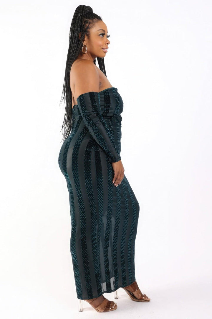 Introducing our Striped Velvet Off-Shoulder Dress—a chic and luxurious addition to your wardrobe. This dress features a stylish off-shoulder design with striped velvet detailing, crafted from a blend of 89% Polyester and 11% Spandex for a comfortable and flattering fit. Key Features: 1. Sizes: Available in 1XL, 2XL, and 3XL, ensuring a flattering fit for various body shapes. 2. Design: The off-shoulder silhouette and striped velvet detailing add a touch of sophistication to the dress. 3. Fabric: Our dress is made from a luxurious blend of 89% Polyester and 11% Spandex for a comfortable and stretchy feel. 4. Color: Opt for the rich and captivating Hunter hue for a chic and timeless ensemble. Product Details: • Stylish Off-Shoulder Design: Elevate your style with the chic and fashionable off-shoulder silhouette. • Luxurious Striped Velvet Detailing: The striped velvet adds a touch of sophistication and texture to the dress. Why Choose Our Striped Velvet Off-Shoulder Dress? This dress is perfect for those who want to make a stylish and elegant statement. The combination of the off-shoulder design and striped velvet detailing creates a luxurious and eye-catching look. Ideal Occasions: Perfect for a variety of occasions, our Striped Velvet Off-Shoulder Dress in Hunter is ideal for parties, formal events, or any celebration where you want to stand out. Customer Reviews: - "Absolutely love this dress! The Hunter color is so captivating, and the striped velvet detailing gives it a chic edge." - Emily R. - "Comfortable and sophisticated—I felt amazing wearing it. The fit is fantastic, and it's perfect for a night out." - Alex P. - "A standout piece. The Polyester-Spandex blend makes it comfortable, and the striped velvet adds a touch of luxury." - Jessica M. Size Guide: For accurate sizing guidance, please review our size chart available on the website. Shipping and Returns: • Fast Shipping: Enjoy speedy delivery to your doorstep. • Hassle-Free Returns: If you're not completely satisfied, our flexible return policy ensures your peace of mind. Get ready to make a statement with our Striped Velvet Off-Shoulder Dress in Hunter. Add it to your cart now and experience the perfect blend of fashion and comfort! Striped Velvet Off Shoulder Dress