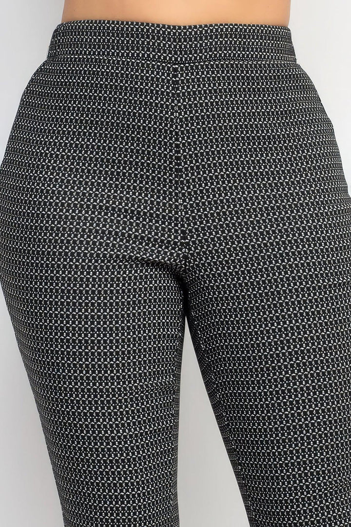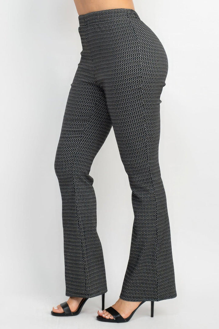 Introducing our Fitted Flare Leg Plaid Pants in Black/White, a sophisticated and stylish addition to your formal wardrobe. These knit pants feature a flattering high-rise waist, an elasticized waistband for comfort, a flare leg silhouette, and a full length for an elegant look. Key Features: 1. Plaid Pattern: The classic black and white plaid pattern adds a timeless and sophisticated touch to these formal pants. 2. High-Rise Waist: The high-rise waist enhances your silhouette and provides a flattering fit for a polished look. 3. Elasticized Waistband: The elasticized waistband ensures comfort and flexibility, allowing you to move with ease. 4. Flare Leg Silhouette: The flare leg silhouette adds a touch of drama and elegance to these fitted pants. 5. Full Length: The full-length design creates a sleek and elongated appearance, perfect for formal occasions. Product Details: • Classic Plaid Elegance: The black and white plaid pattern adds a timeless and versatile element to these formal pants. • Comfortable Fabric: Made with 49% Polyester, 37% Rayon, 11% Nylon, and 3% Spandex, these pants offer comfort and flexibility for a stylish fit. • Quality Craftsmanship: Meticulously crafted for durability and a polished finish. Why Choose Fitted Flare Leg Plaid Pants? Make a statement at formal events with our Fitted Flare Leg Plaid Pants. The combination of the classic plaid pattern, high-rise waist, and flare leg silhouette ensures a sophisticated and stylish look. Ideal Occasions: Perfect for formal events, office wear, or any occasion where you want to showcase your polished and elegant style. Size Guide: For accurate sizing guidance, please review our size chart available on the website. Shipping and Returns: • Fast Shipping: Enjoy speedy delivery to your doorstep. • Hassle-Free Returns: If you're not completely satisfied, our flexible return policy ensures your peace of mind. Elevate your formal attire with the Fitted Flare Leg Plaid Pants in Black/White. Add these sophisticated and stylish pants to your wardrobe and make a lasting impression at any event! Fitted Flare Leg Plaid Pants