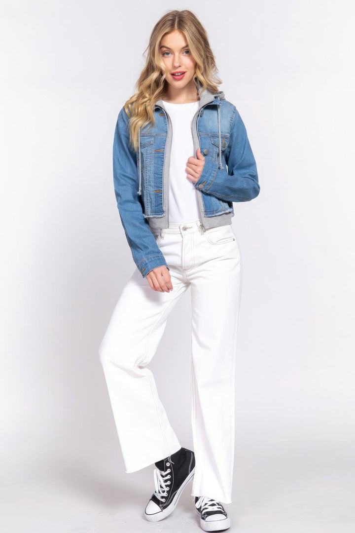 Long Slv Terry Hoodie Denim Jacket