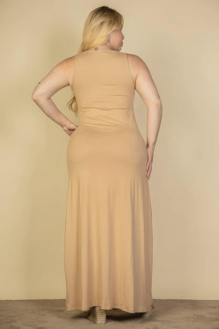 Plus Size Plunge Neck Thigh Split Maxi Dress
