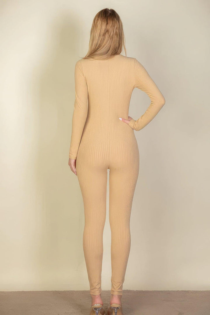 Ribbed Scoop Neck Long Sleeve Jumpsuit