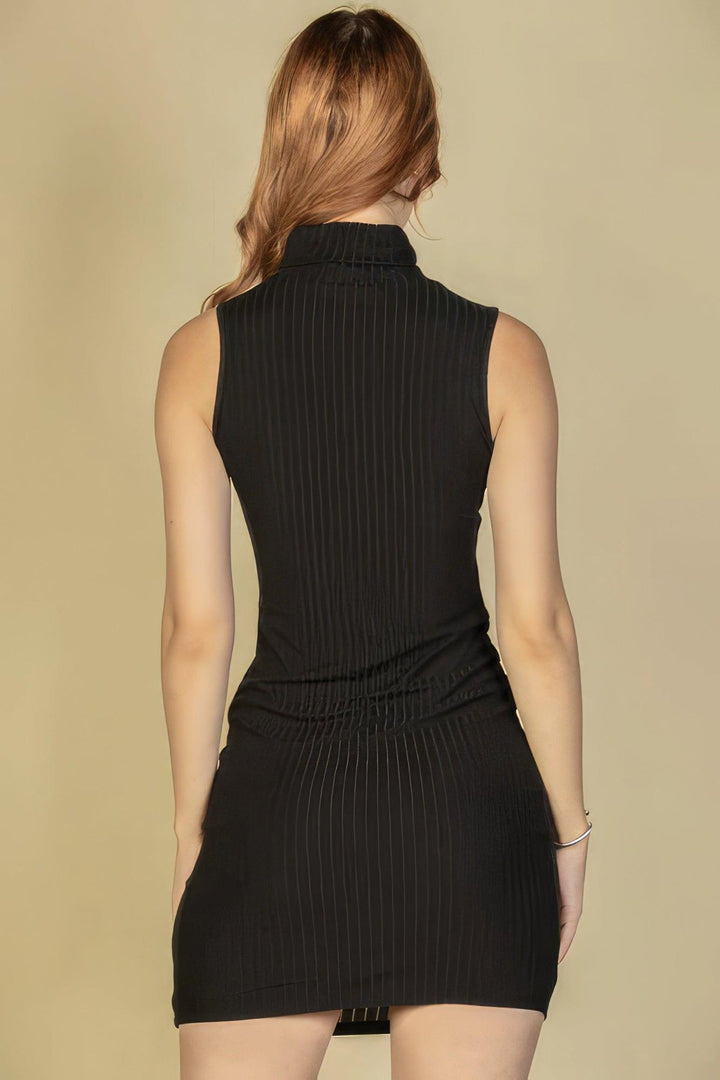 Ribbed Turtle Neck Sleeveless Bodycon Mini Dress