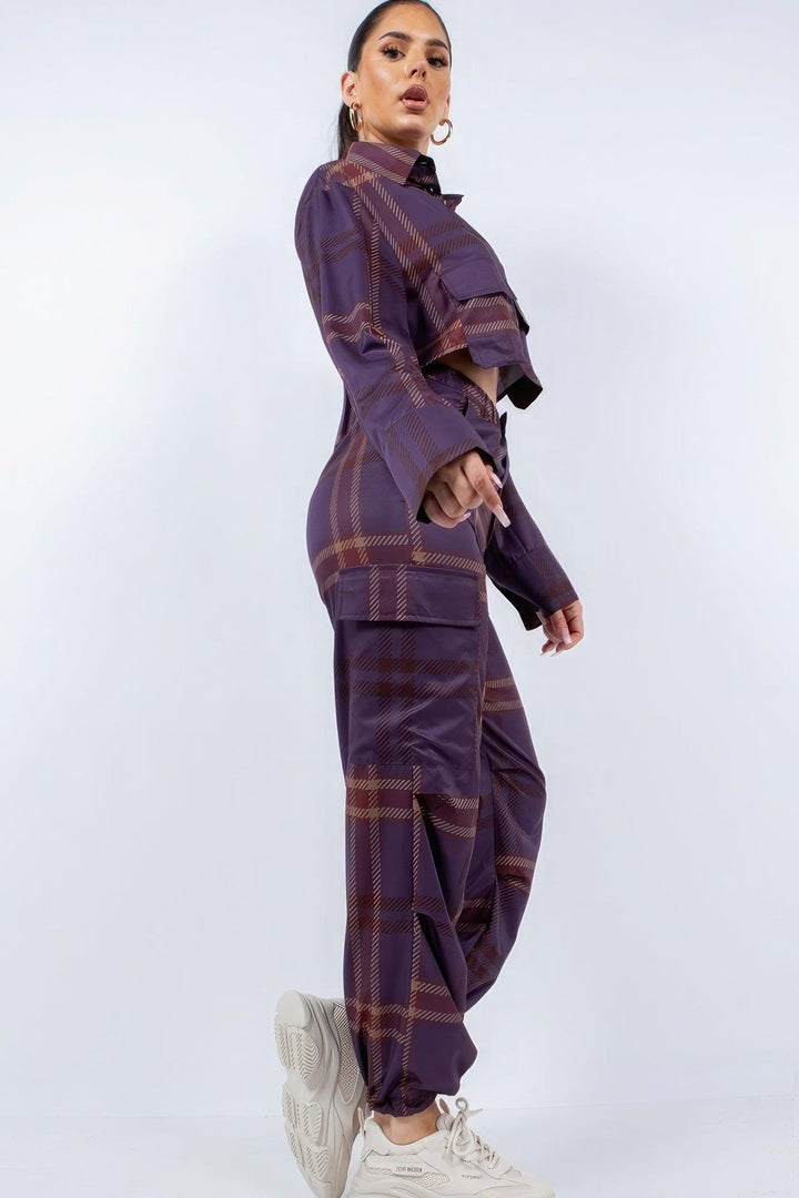 Introducing our Cropped Shirt & Cargo Pants Set—a trendy and comfortable ensemble designed to elevate your style. This set features a cropped shirt with two front pockets and wide cuffs detail, paired with mid-rise cargo pants equipped with an elastic waistband. The cargo pants also include an out pocket design and adjustable hems with toggles for a customizable look. Key Features: 1. Fabric: Immerse yourself in the luxurious feel of our set, crafted from 100% Polyester for optimal comfort and flexibility. 2. Fit: Find your perfect fit with sizes ranging from S to L, ensuring a tailored look for every body type. 3. Color: Embrace the rich and sophisticated Plum hue, adding a touch of elegance to your ensemble. 4. Cropped Shirt Details: - Two Front Pockets: Practical and stylish for added functionality. - Wide Cuffs Detail: Adds a fashion-forward touch to the shirt. 5. Cargo Pants Details: - Mid-Rise: Ensures a comfortable and versatile fit. - Elastic Waistband: Provides flexibility and ease of wear. - Out Pocket Design: Enhances the utility and style of the cargo pants. - Adjustable Hem with Toggle: Allows for a customizable and trendy look. Product Details: • Comfortable All-Day Wear: Crafted from 100% Polyester, our Cropped Shirt & Cargo Pants Set ensures maximum comfort, allowing you to wear it effortlessly throughout the day. • Quality Craftsmanship: Each piece undergoes expert stitching, meeting the highest standards of quality and durability. • Care Instructions: Maintain the set's pristine condition with our provided washing and care instructions. Why Choose our Cropped Shirt & Cargo Pants Set? Elevate your style with the perfect blend of comfort and contemporary design. This set stands out with its trendy cropped shirt and versatile cargo pants combination. Ideal Occasions: Perfect for various occasions, from casual outings to adding a fashion-forward touch to your everyday look, our Cropped Shirt & Cargo Pants Set in Plum is a versatile and stylish choice. Customer Reviews: • "Absolutely love my set! The fit is perfect." - J. M. • "The cargo pants are so stylish, and the adjustable hem is a great feature." - A. S. • "Comfortable and chic—I've received so many compliments!" - K. L. Size Guide: For accurate sizing guidance, please review our size chart available on the website. Shipping and Returns: • Fast Shipping: We offer speedy delivery to your doorstep. • Hassle-Free Returns: If you're not completely satisfied, our flexible return policy ensures your peace of mind. Add our Cropped Shirt & Cargo Pants Set in Plum to your cart now and experience the perfect blend of fashion and comfort! Cropped Shirt & Cargo Pants Set